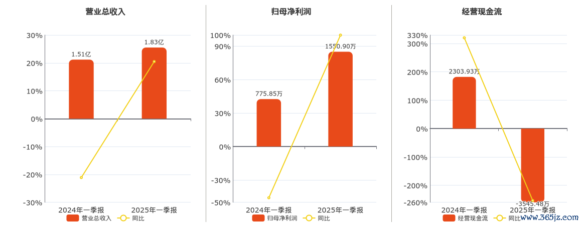 公司营业总收入为1.83亿元,在已披露的同业公司中排名第125。归母净利润为1550.90万元。经营活动现金净流入为-3545.48万元,在已披露的同业公司中排名第173,较去年同报告期经营活动现金净流入减少5849.42万元,同比较去年同期下降253.89%。