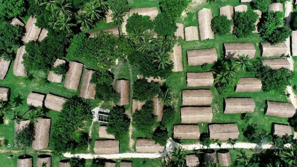 r仲夏七月,东方市白查村的空气里弥漫着茅草清香。黎族船型屋营造技艺传承人符打因正带着村民在屋顶上忙碌,双手翻飞间,一捆捆金黄的茅草被藤条牢牢固定。“这次要修63间,用的全是附近山上采来的茅草和藤条,下个月就能完工。”他抹了把汗,指向远处错落有致的船型屋群。这些形如倒扣木船的茅草屋,在海南岛西部的雨林深处已守望了数百年。